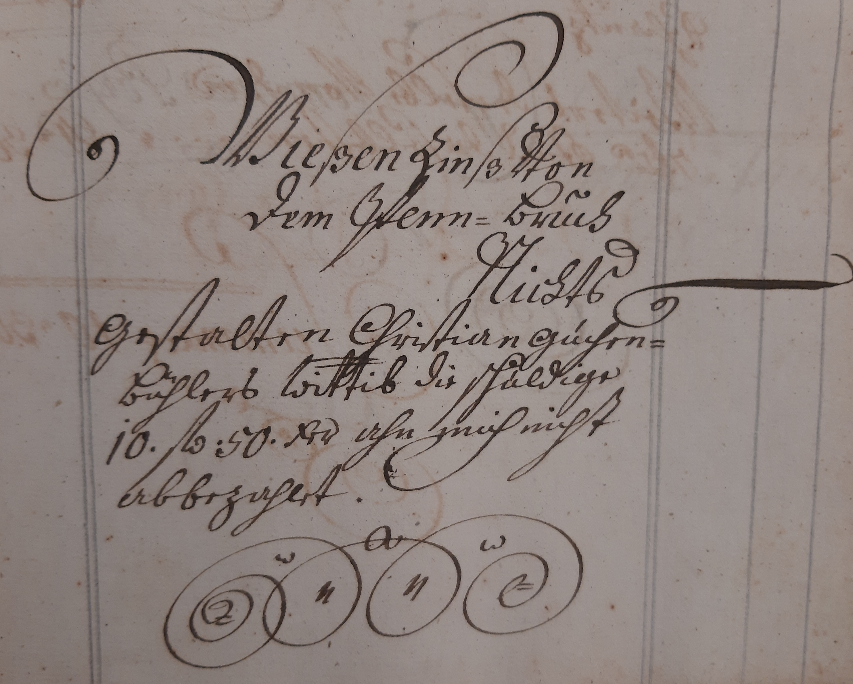 Laut [Albert 1952] fand der letzte Holzverkauf 1742 statt. Anschließend hatte Christian Guckenbühler offenbar Mühe, seine Familie zu unterhalten, denn im September 1747 gewährten ihm die Stadtoberen Unterstützung.. Im entsprechenden Vermerk wird er als " alter Mann" bezeichnet. 1750 schließlich wird seine Frau im städtischen Rechnungsbuch fü das Jahr 1749 als Witwe bezeichnet, die den Pachtzins von 10 Gulden, 50 Kreuzer für Wiesen im "Pfenn-Bruch" nicht bezahlen kann (siehe Abbildung). Das Pfenn-Bruch, ein Sumpfgebiet, das vom Pfennbach durchzogen wurde, befand sich wahrscheinlich im Gebiet des heutigen Gartenschau-Geländes.