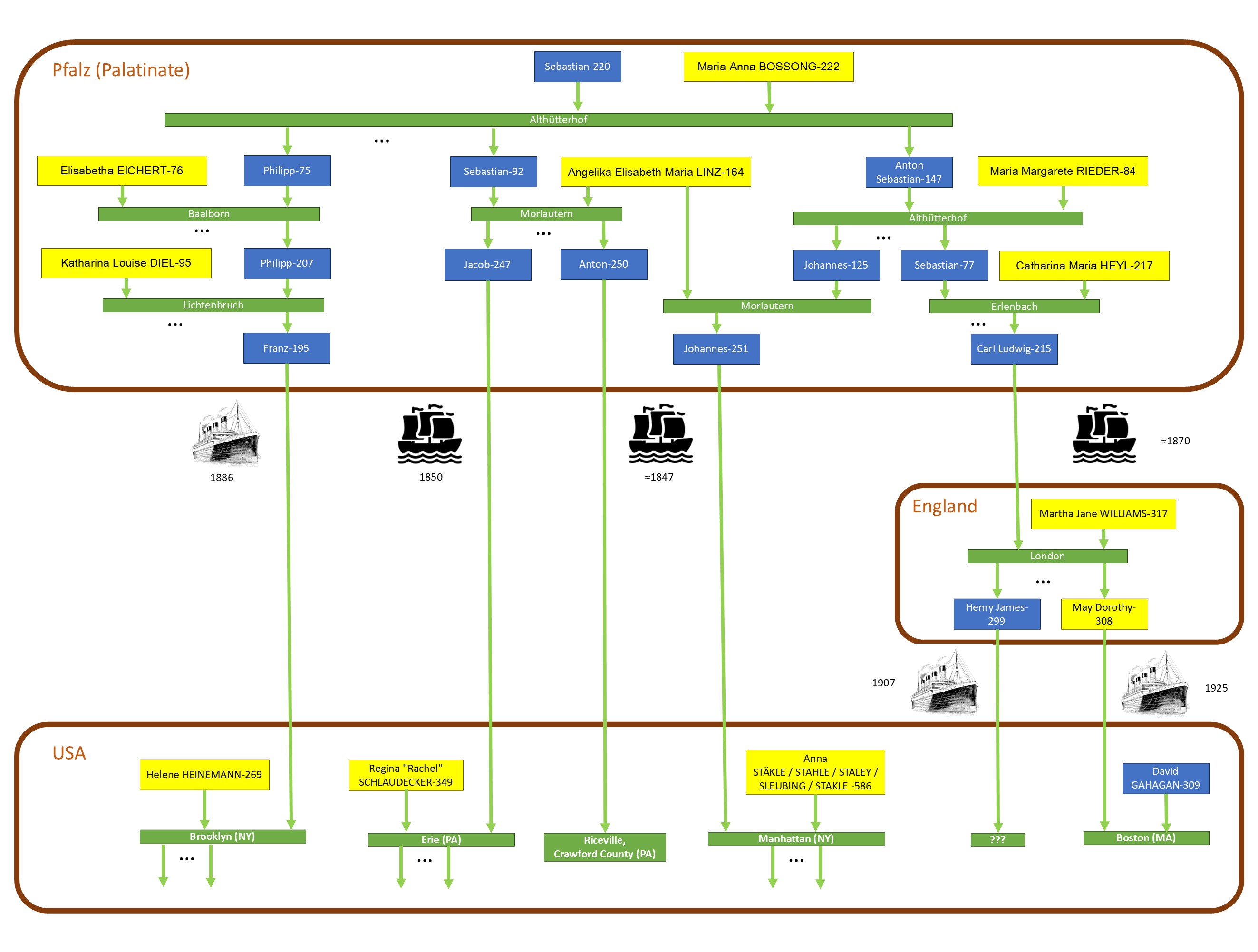 Johannes und seine Halbbrüder Anton und Jacob wanderten aus der Pfalz in die USA aus. Im folgenden Abschnitt zeichnen wir ihre Geschichte nach.